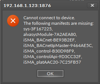 iSMA Cannot connect to device. The Following manifests missing .... nach Erstinstallation von iSMA Tool.