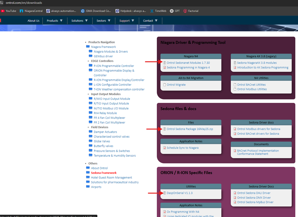 2. Lade unter https://www.ontrol.com/en/downloads die drei Zip Daten herunter
