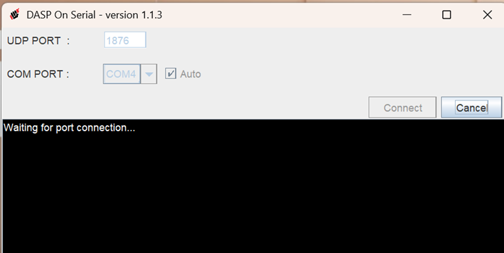 5. Starte heruntergeladene DaspOnSerial V1.1.3 und warte auf die Verbindung.