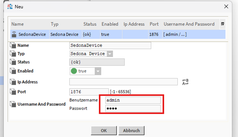 12. Erstelle ein neues Device im Sedona Netwerk.