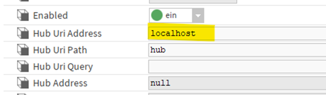 5. Nun sollte im Failover Connection Hub Uri Address localhost drinstehen.