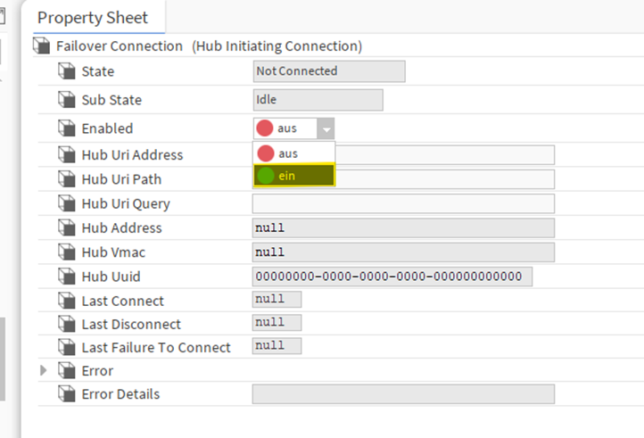 8. Ergänze in allen Kontrollern die Failover Hub Uri Address mit der Adresse des Failover Hub Kontrollers und aktiviere bei allen die Funktion.