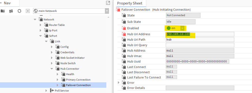 10. Wenn alles funktioniert hat, sollte nun unter ScHubPort->link->Hub Connector->Primary Connection eine Hub Uuid vergeben werden.