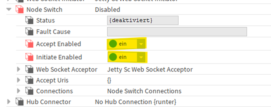 4. Setzte unter Node Switch den Accept Enabled und den Initiate Enabled auf True