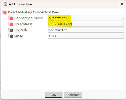 13. Prüfe auch auf der Hub Station (z.B. den Supervisor) ob unter ScHubPort->link->HubFunction ->Connections eine neue Connection vom System erstellt wurde.