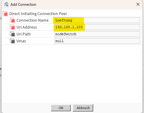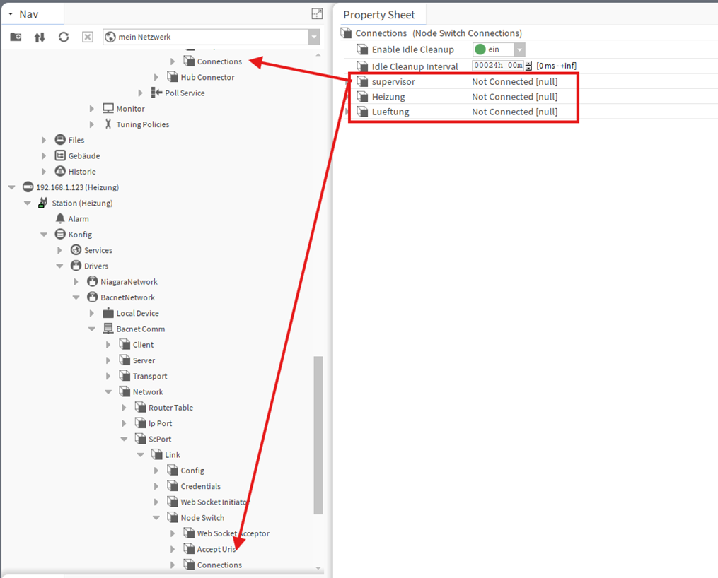 12. Behalte nur die connection die es in der Station auch braucht. In der Heizung Station kann connection Heizung gelöscht werden. In Der Station Lüftung die connection Lüftung und auf dem Supervisor die connection Supervisor.