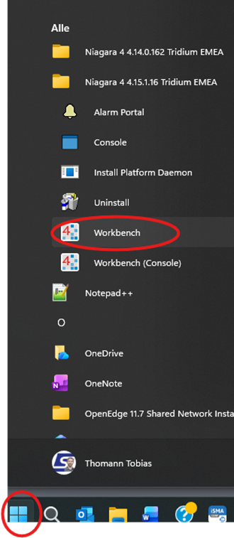 2. Öffne anschliessend erneut das Startmenü und starte die Workbench.