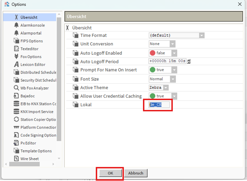 2. Stelle die gewünschte Lokalsprache ein:
