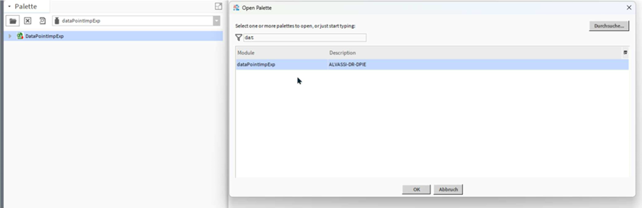 4. Öffne die Palette dataPointImpExp