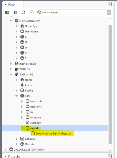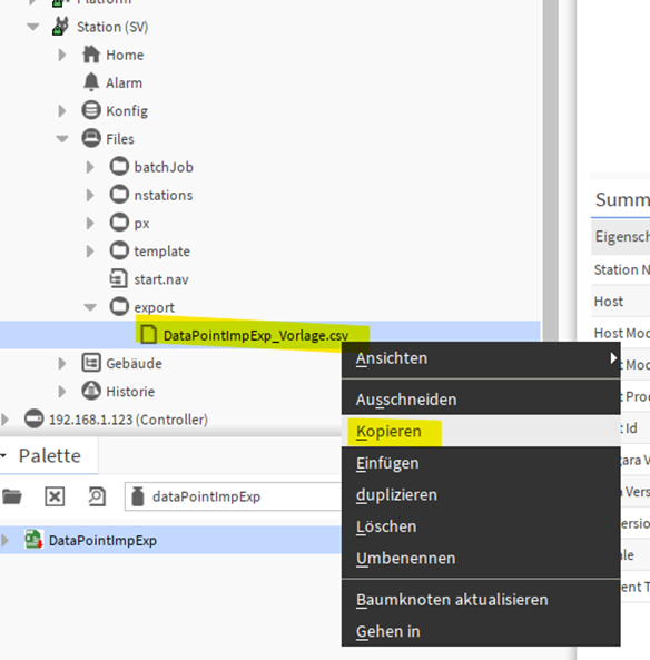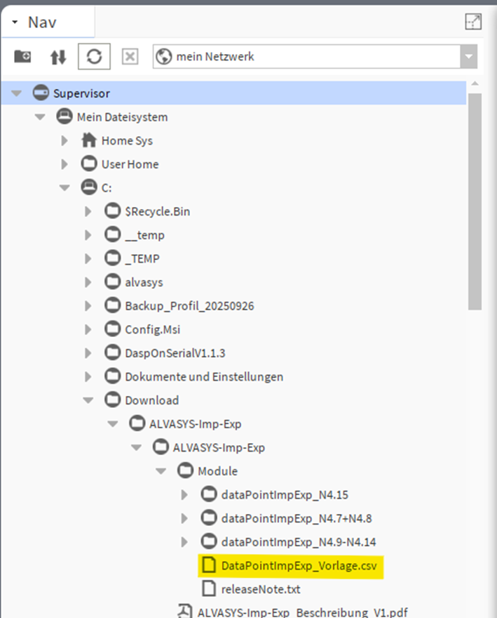 1. Kopiere Lokal von deinem Rechner die DataPointImpExp_Vorlage.csv.