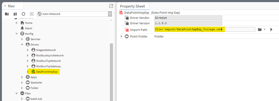 4. Klicke doppelt auf das DataPointImpExp und füge den Pfad ins Feld Import Path. Speichern.