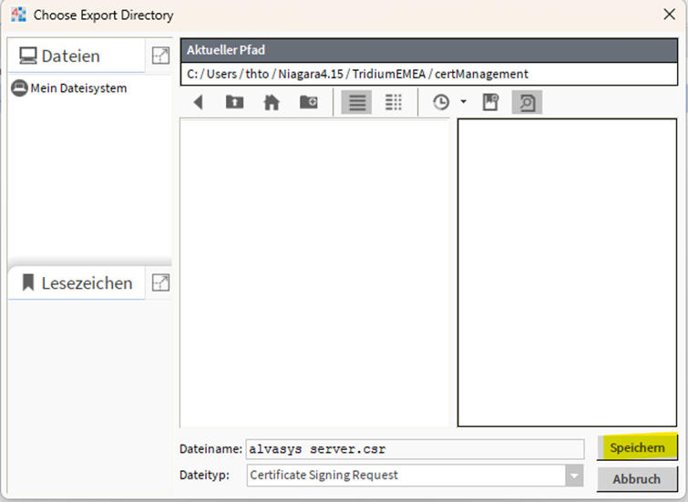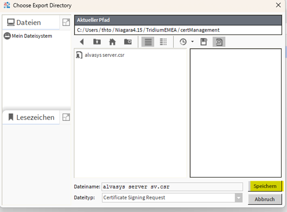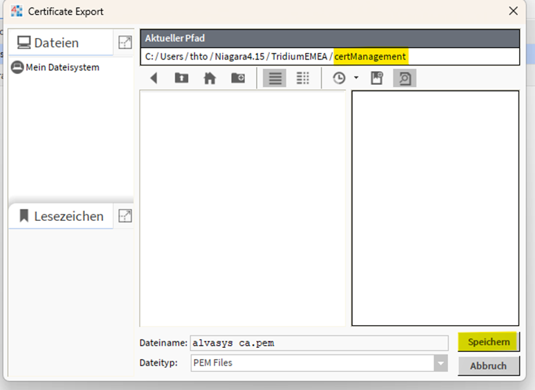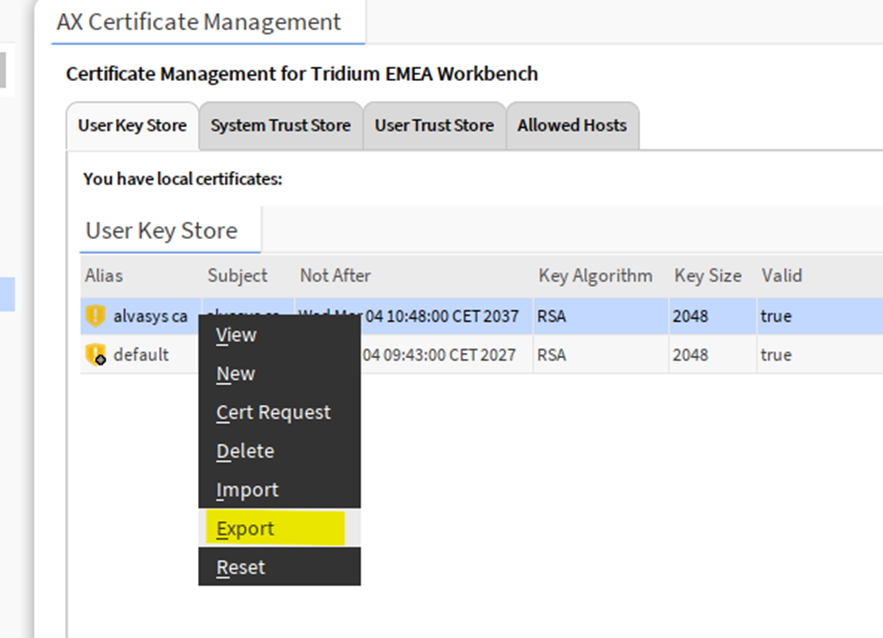 4. Exportiere das Zertifikat mit rechter Maustaste->Export.