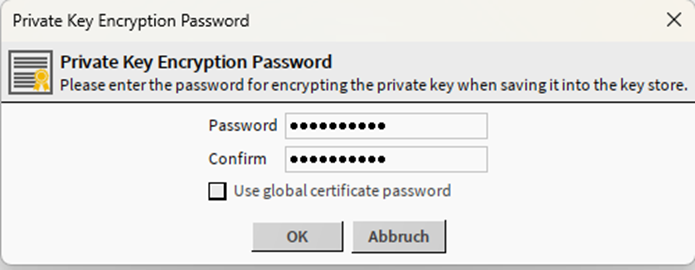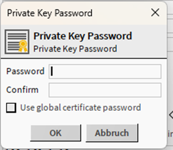 9. Signiere das Zertifikat. Gib ein ablaufdatum ein und trage das Passwort des CA-Zertifikates ein. Bestätige mit OK.