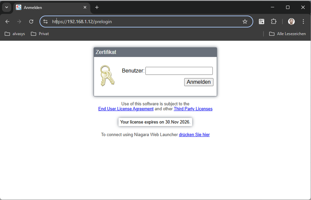 Niagara N4 HTTPS Warnung im Browser umgehen