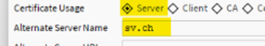 3. Wichtig beim Feld Alternative Server Name den gewünschten Hostname «sv.ch» einzutragen.