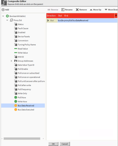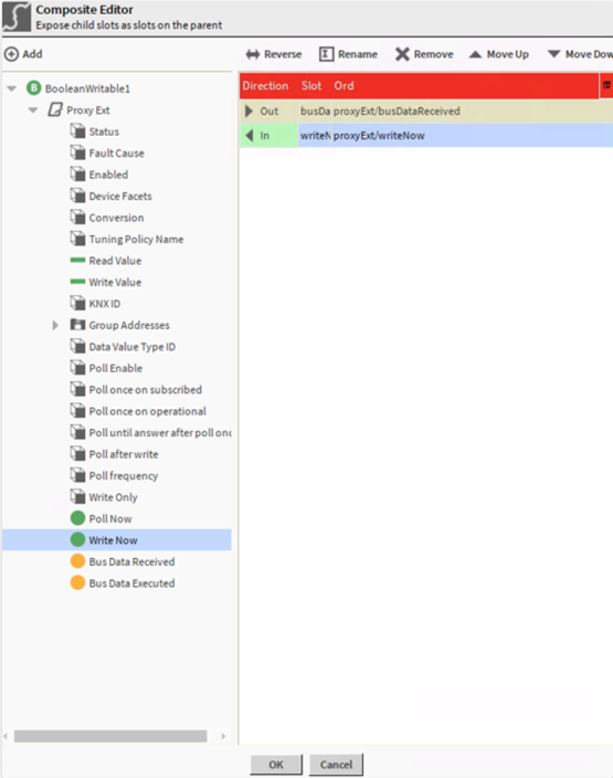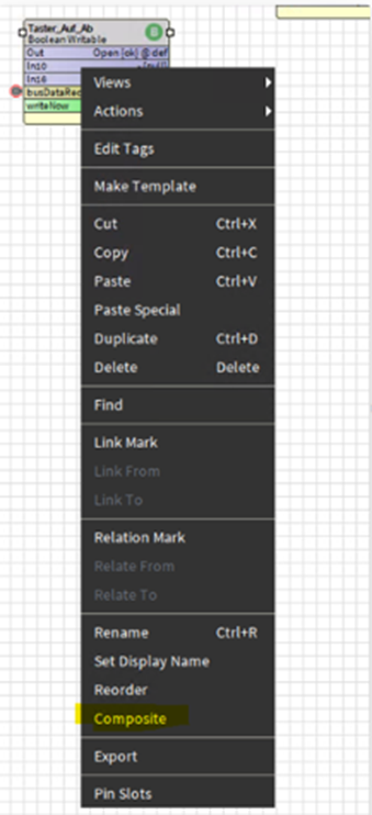 2. Rechtsklick auf BooleanWriteable (KNX-Datenpunkt im KNX Treiber)- > Composite öffnen.
