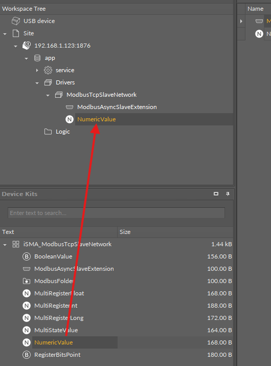 8. Nun kannst du die gewünschten Datenpunkte in den ModbusTcpSlaveNetwork hinzufügen.