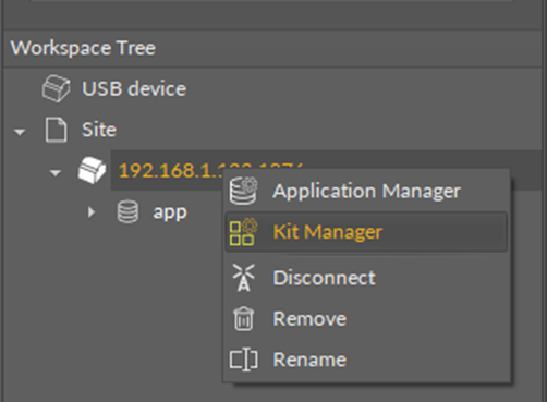 2. Klicke mit rechter Maustaste auf den verbundenen Kontroller und wähle Kit Manager.
