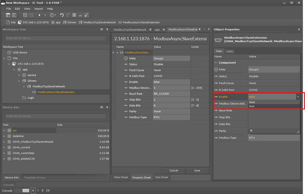 7. Aktiviere den ModbusAsyncSlaveExtension